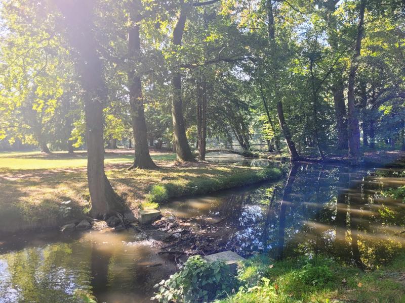 Wie gesagt, große Wiesen- und Wasserflächen mit phantastischem Baumbestand. Insbesondere die vielen verschiedenen Eichen fallen auf. :o