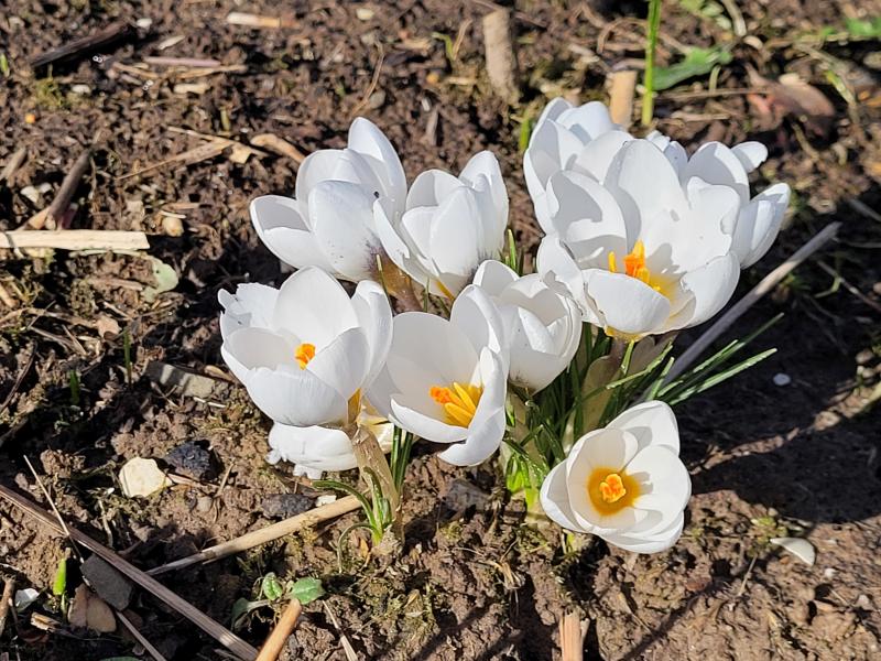 Hier begrüßten mich heute immerhin schon ein paar Krokus 'Ard Schenk ' bei herrlichem Wetter. 8)