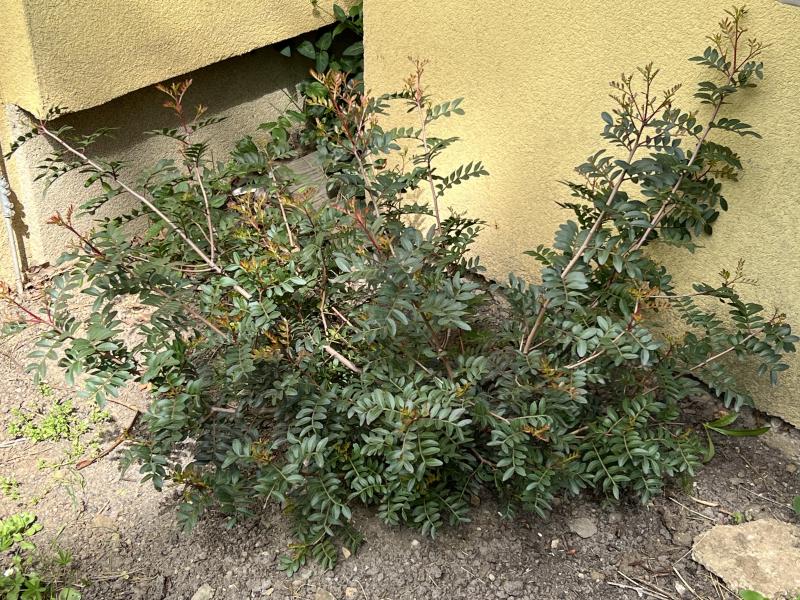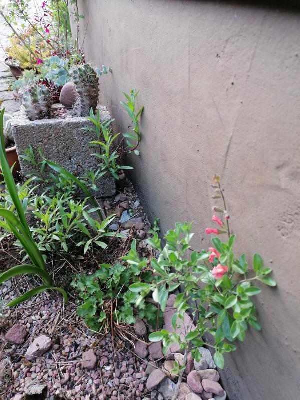 Überraschend und erfreulich ist für mich auch, dass Pistacia lentiscus, der Mastixstrauch, hier super gedeiht (gepflanzt 2020). Hat eine unbeheizte Mauer im Rücken und das (thermisch isolierte) Haus daneben. Ich hab noch eine anderes Exemplar das ich 2017 weniger geschützt gepflanzt habe, 3 Meter vom Haus, windexponierter. Dem geht es auch gut, aber es wächst wenig.