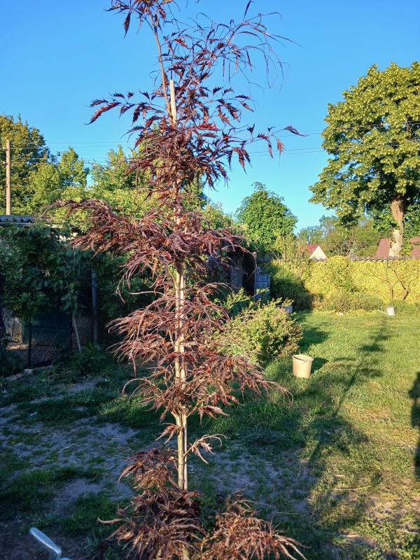 2 Meter sollte das Bäumchen haben , alles andere wird gefressen. Nicht wirklich passend ist mir Fagus sylvatica " Midnight Feather" in den Wagen gehüpft . Nach Protest muss die wohl in den Gartenteil und ich kann noch einen Baum kaufen ;D
