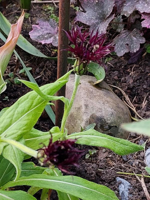 Suchbild: schwarze Flockennlume Centaurea montana "Black Sprite"