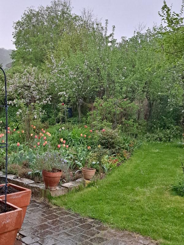 Ich hoffe sehr, dass der Regen auch mal den Osten trifft und nicht immer nur hier herunterkommt. Der Boden ist hier endlich mal soweit abgetrocknet, dass man etwas im Garten machen kann, und aktuell sind schon wieder heftige Unwetter mit Starkregen bis zu 35 Liter pro Quadratmeter angekündigt. Aktuell zeigt das Thermometer 24°C, und die Sonne scheint von einem milchigen Himmel herunter. Auch für Freitag, Samstag, Sonntag und Montag stehen nun wieder Regenschauer in der Prognose, ich bin es langsam leid, dass ich im Garten einfach nichts geschafft kriege. :(
