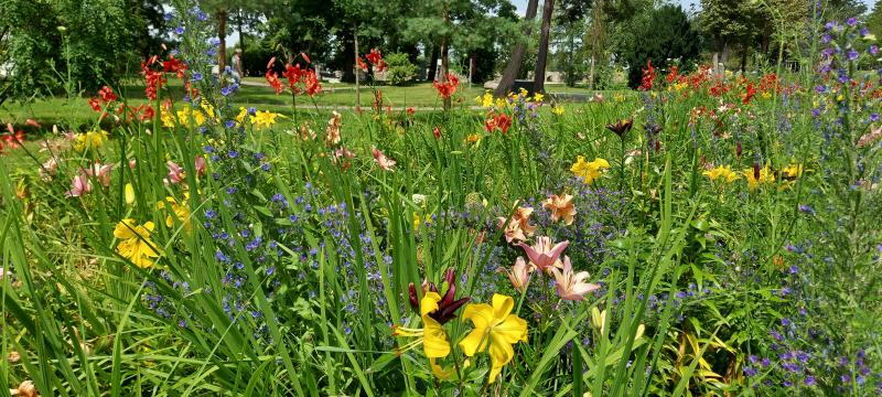 Bei der Grundmauern der Gradierwerk 3 sind überwiegend trockenheitsverträgliche Pflanzungen zu sehen. Auh mit etwas wildwuchs Charakter ;)