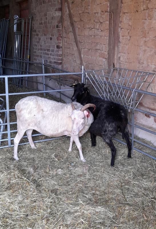 Während die meisten drinnen waren, weil... der vordere Zaun nach innen gezogen und der eigentliche Durchbruch des hinteren Zauns davor war, sannen die Freigeister Mina und Allegra auf Abenteuer :-[ dieSchäferin so dermaßen stinkwütend, dass die beiden tatsächlich den Rückzug immerhin auf die Fläche antraten. Mit List und Tücke gelang es mir den Zaun aufzubauen ohne dass alle querfeldein zu neuen Ufern aufbrachen.