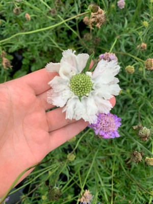 Da ich jezt mehr oder weniger bewusst in ein Weiß Blau Schema in der Pflanzung gelangt bin, dachte ich wäre noch ganz interessant diese Schema bei den Skabiosen zu wiederholen.
