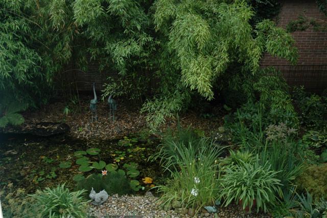 Na, gerade ist es trocken, hab mal den Schaden aufgenommen. der Teich ist "gut"gefüllt, ja, ja. Die Agapanthusse liegen flach, die Herbstanemonen auch, meine jungen Punika's hat's zerhauen, die Rosen faulen beinahe "hörbar". Die Seerosenblätter haben Löcher. der Bambuswald hängt tief über dem Teich. Kein Frosch zu sehen, ich glaube selbst denen ist es zu nass. Ein Huhn fängt vor Schreck wieder an zu brühten. Das sind die einzigen die trocken geblieben sind , da sie in's Nachthock geflüchtet sind. Noch mehr Katastrophenmeldungen? Nee , das muss ich nicht noch als Foto festlegen... Aber es wird schon wieder heller. LG