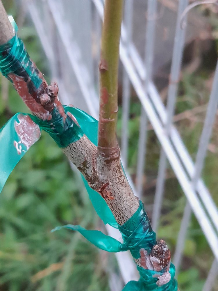 Die Ästchen haben sich nie richtig von dem Eingriff erholt. Ich muss dazu sagen, dass mein Pfirsich, hab nur den einen, ziemlichen Krankheitsdruck mit Schrotschuss hatte. Und welcher Pfirsich oder Aprikose ist nicht mehr oder weniger mit Pseudomonas geplagt. Wenn ich nochmal aus wäre auf einem Mehrsortenpfirsich würde ich vlt. auf eine scharkatolerante Zwetschge die verschiedenen Sorten veredeln.