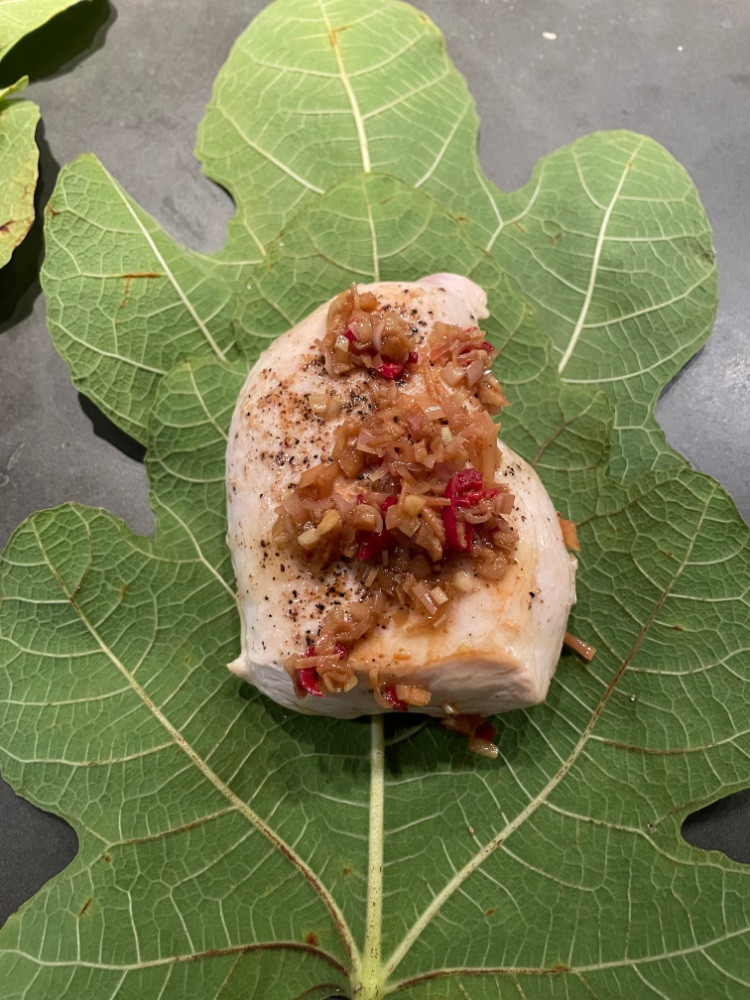 Vielleicht klappt es mit dem Einfrieren von Feigenblättern ja auch wie mit den Weinblättern in dem Video? Ich probier es mal aus und die eingewickelte Hühnerbrust klingt lecker