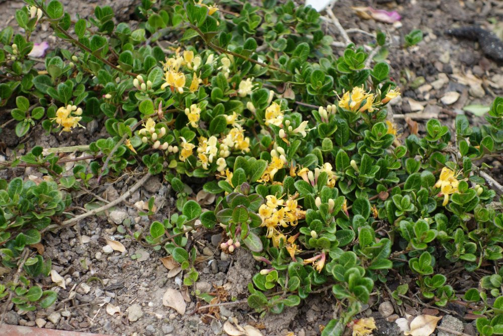 In euren Linocera-Listen fehlt noch die ganz kleine, L. crassifolia, hier die Sorte 'Little Honey'.