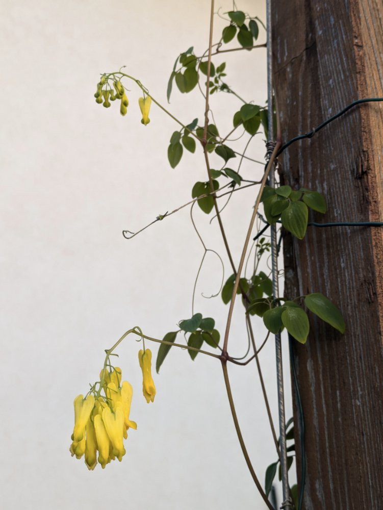 Die kletternde Dicentra blüht still vor sich hin, und die letzten Herbstanemonen liegen in einem Asternbett.