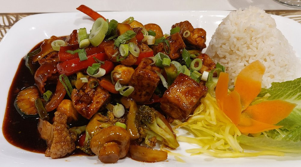 Wir waren gestern kurzentschlossen beim Chinesen. Es gab gebratenen Tofu mit Gemüse.