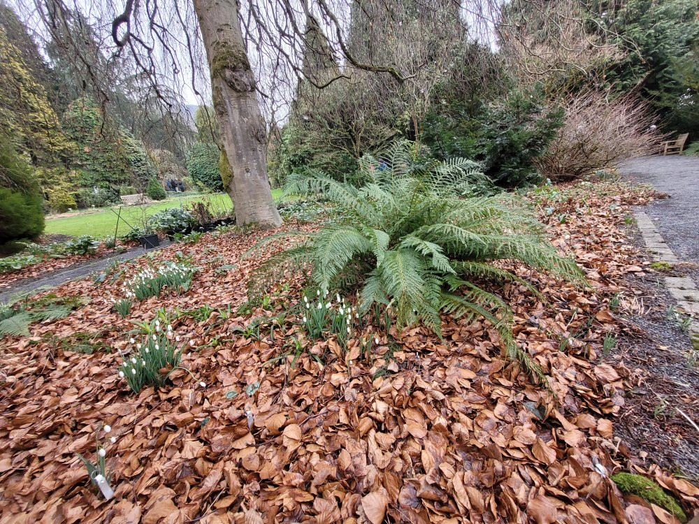 Im Waldpark kommen Gehölz Liebhaber voll auf ihre Kosten. Faszinierende Baum Persönlichkeiten sind hier auf einem großen Hang versammelt. Kombiniert mit herrlich dichtem, üppigem Bodenbewuchs. Die Grasflächen und die Kieswege sind voller Cyclamen und Crocus Sämlinge, man muß aufpassen wo man hintritt.