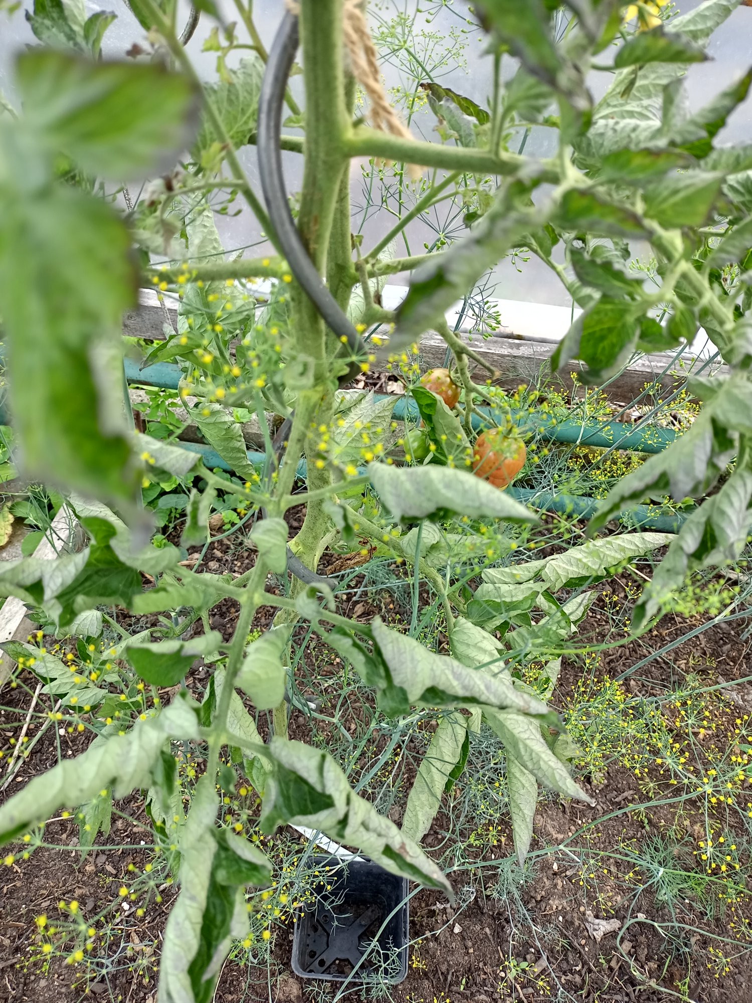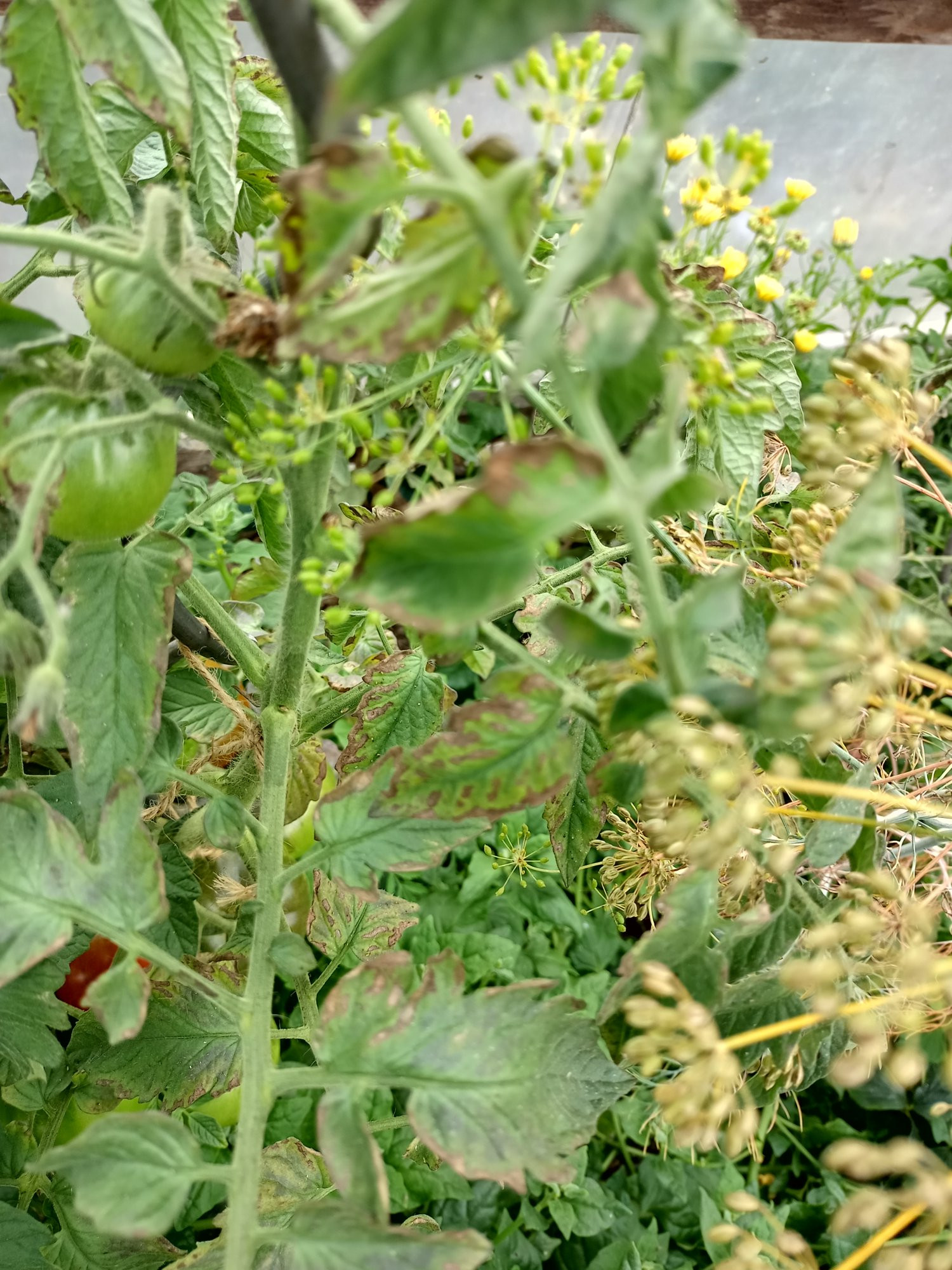 An Tomaten hat man ja Rostmilben importiert, Aculops lycopersici weils nicht genug Schädlinge und Krankheiten gibt (Achtung, Ironie). Begleitkennzeichen sind aber Verkorkungen an Früchten und wichtig ist auch, dass Blattstengel ebenso verfärben. Verticillium zeigt ein anderes Bild.