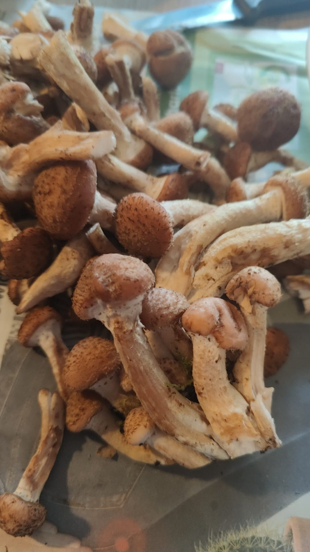 Bei mir ist der Hallimasch offenbar auf dem Rückzug, nur paar Mickerlinge in der Wiese, nix Gescheites, lohnt die Ernte nicht....