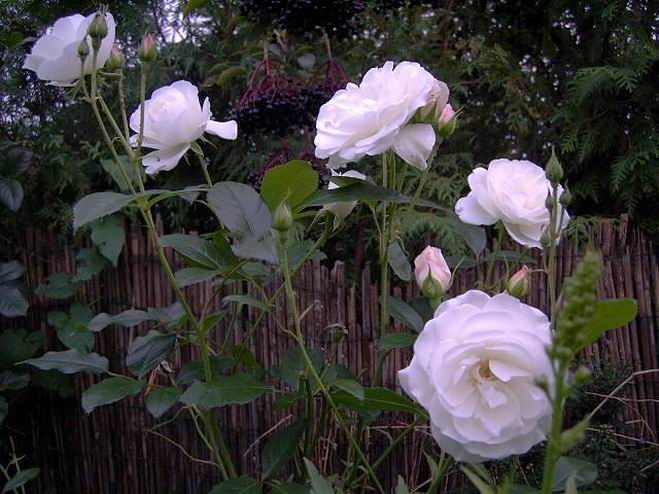 Ich glaube, für das Schneewittchen war es dieses Jahr besonders schwierig. Die feuchte Luft, und der viele Regen setzen mancher Rose zu. Meines hat zwar keine Blätter, aber dafür noch ein paar Blüten. Hier und da treibt es wieder aus. Man muß nur geduldig abwarten.