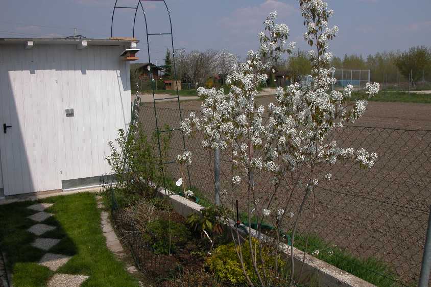 Hier ein Foto von meiner Felsenbirne in volle Blüte