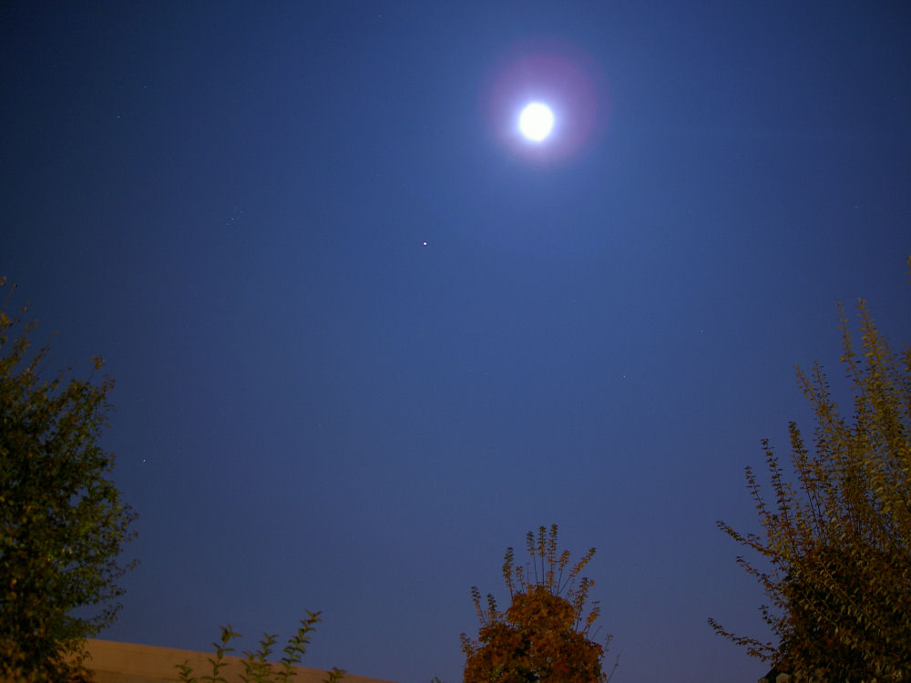 Von mir auch ein Bild vom Mond vor ca 25min aufgenommen :)Mond und links darunter der Mars!die spielerei mit dem Teleskop tu ich mir heut nicht mehr an--->zu kalt