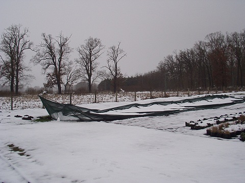 Hier liegt nur noch angeschmolzener Matschschnee.Enorm, was Schnee für ein Gewicht bekommt.Meinen Schattentunnel, ca. 3 m hoch und 20 m lang,hat es jedenfalls komplett umgehauen