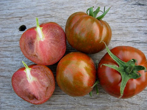 Zum Vergleich ein Bild von Black Zebra vom letzten Jahr.BZ reift bei mir immer erst nach Red Zebra. Das Fruchtfleisch ist dunkelrot.*lg*