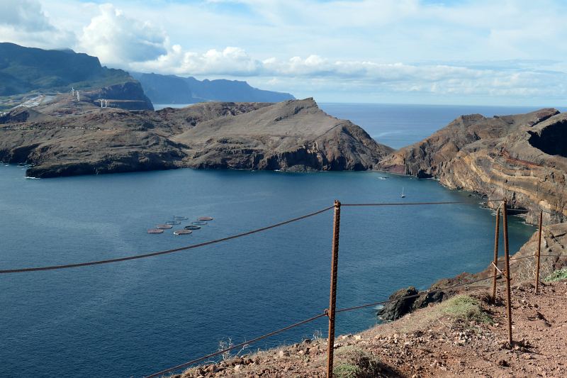 Blick zurück von der Ponta do Furado. Der Aufstieg zum Aussichtspunkt war anstrengend, aber es lohnt sich. Die kleinen weißen Punkte im Hintergrund sind die geparkten Autos - von da läuft man los.
