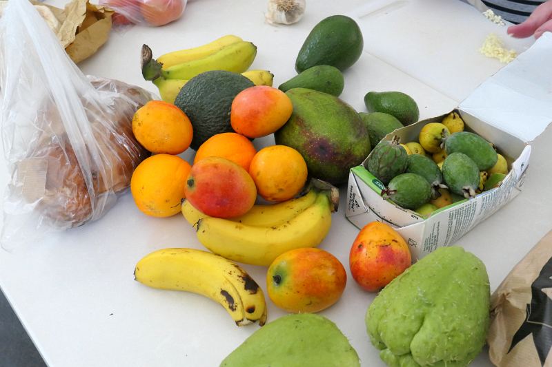 Apropos Essen. Beim Bauernmarkt in Prazeres haben wir eine Großeinkauf gemacht. Dieser Markt ist nur Sonntag Vormittag in einer ziemlich schlichten Halle. Leider wurden auch dort nur geschmacksneutrale Tomaten verkauft. Daß die Importtomaten im Supermarkt nichts taugen, verwundert ja nicht so, aber die aus lokalem Anbau ???