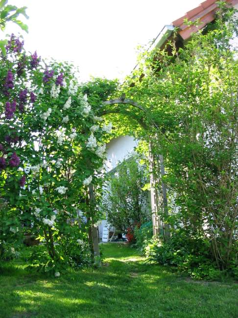 Endlich kommt Farbe in meinenRosen - Flieder - Bogen.Mai, mein Lieblingsmonat. Schlagartig ist alles grün. Und was für ein Grün.LG Viola