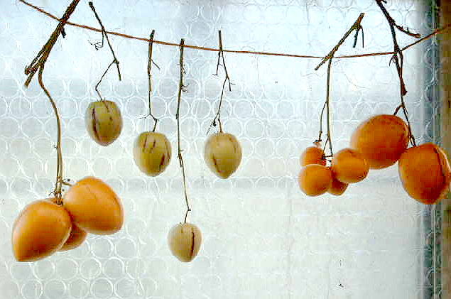 da fällt mir ein: meine pepinos waren nur ganz am anfang vom kauf bis ende mai im gewächshaus. dann standen sie einfach draussen, etwas geschützt am haus. nur zum nachreifen kamen dann die abgeschnittenen früchte wieder ins gewächshaus. das bild ist übrigens von anfang november.
