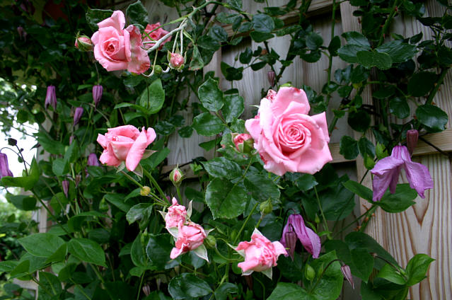 Langsam entfalten sich die Rosen. Links im Bild Russeliana
