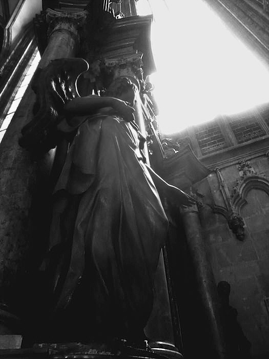 Dieser Engel wurde eigentlich in Farbe aufgenommen, wirkt aber so gegen das Licht nicht.In schwarz-weiß gefällt er mir besser.Lässt er sich noch optimieren?
