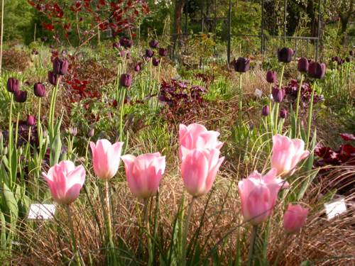 Momentan ist Hoch-Zeit in meinem Lieblingsbeet. Wären die Tulpen Apricot Beauty aprikosiger, dann hätte ich meine Café/Caramel/Aprikose - Schokolade-Sahne-Mischung perfekt, wie ichs mir vorstelle. Ich arbeite noch dran. Bin ja auch erst beinahe 10 Jahre da dran