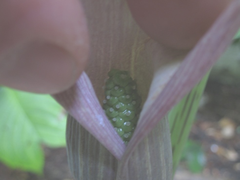 Die Blüte hat sich leider nicht ganz korrekt geöffnet. Deshalb noch mal mit geöffneter Spatha. Sonderbarerweise fehlt der obere sterile Kolbenabschnitt. Vielleicht ist das ja ein Erkennungsmerkmal?