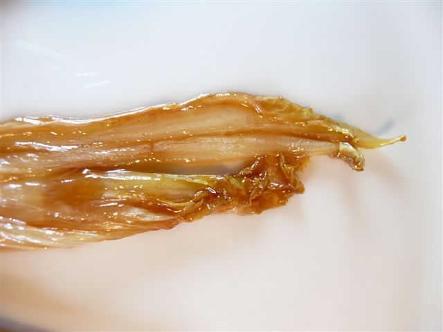 aber sicher, ich hab sogar ein Bild wie er vor dem untertauchen ausgesehen hatden Chicorée der Länge nach in 3 mm dicke Teile schneiden, so dass sie durch den Mittelkern noch zusammen halten .Pro Knospe habe ich 4 Teile rausbekommen, der Rest kam in die SuppeEtwas Zucker mit wenig Butter in einer Bratpfanne goldbraun werden lassen, mit wenig kochendem Wasser ablöschen und rühren bis sich die festen Caramelteile aufgelöst haben, wenn die Masse in der Pfanne Blasen wirft, den Chicorée hineinlegen, sorgfältig wenden, die Caramel-Masse sollte am Chicorée haften, das dauert ein paar Minuten, weil der Chicorée Saft ab gibtDu bist bestimmt so lieb und sagst uns, wie man Chicoree caramelisiert?