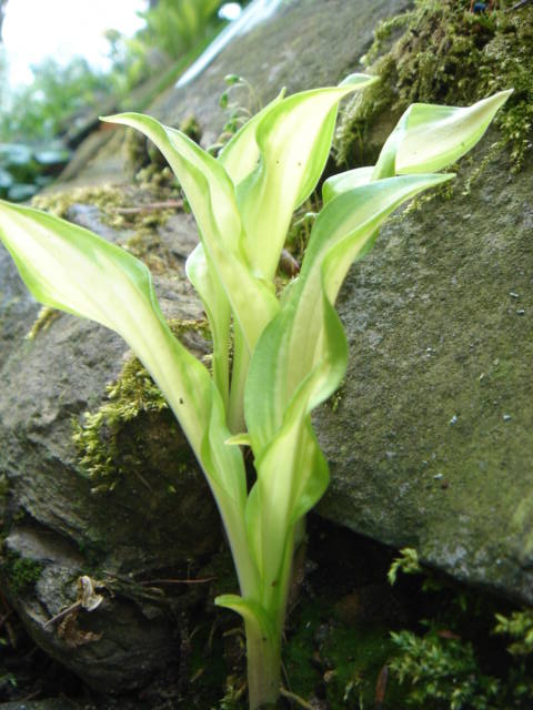 Auch die filigrane Hosta 'Curls' stört sich nicht daran zwischen Steinen wachsen zu müssen.