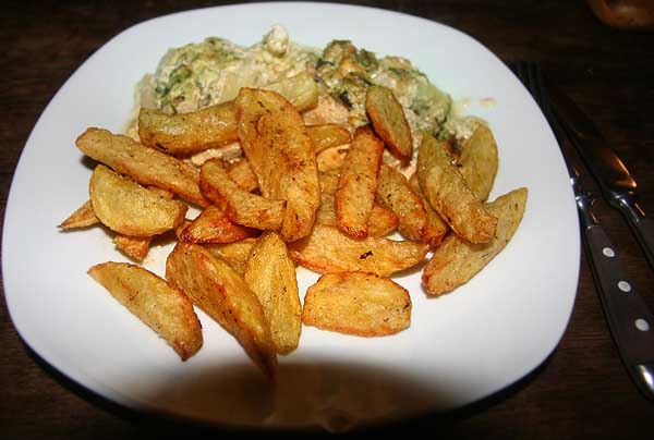 Vorgestern Knusperente mit Reis und Tomaten-Brombeer-Chili-Chutney, dazu einen großen bunten Gartensalat. Gestern Matjes nach Hausfrauenart (saure/süße Sahne, Mayo, Wacholderbeeren, Senfkörner, Loorbeer, Apfel, roter Zwiebel usw.) mit Pellkartoffeln und sauren rheinischen grünen Bohnen.Heute nochmal (nur für mich) Ente mit Reis und Chutney, dazu Butternuß-Kürbis vom Ofenblech mit Butter, Rosmarin, Knoblauch, Muskat, P, S und Honig.