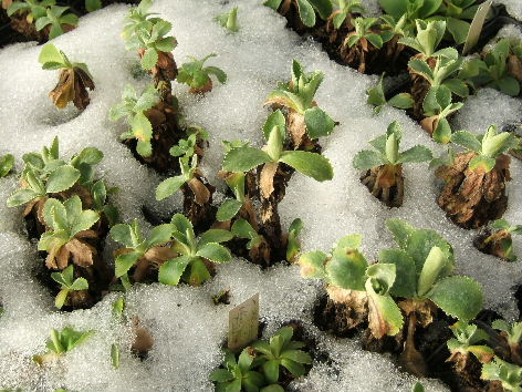 siehst du, das ist der Unterschied zwischen deiner schneesicheren Lage und meinem Schneematschtaunass. Die abgestorbenen Blätter deiner Pflanzen sind trocken wie es sich gehört, bei mir sind es glibberig matschige Lappen.
