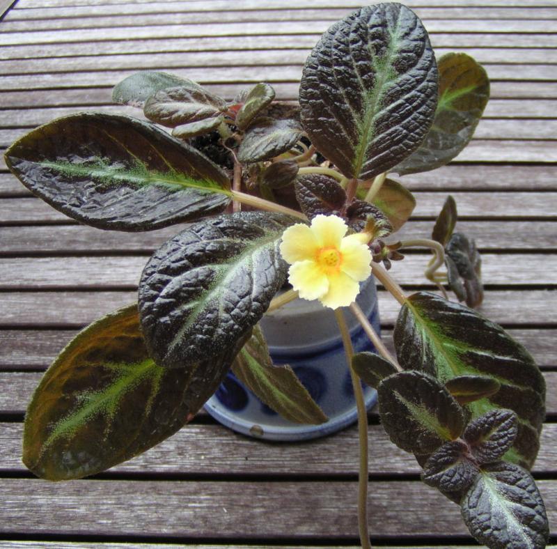 Die Gesneriacaeen mögen die Wärme und blühen derzeit fast alle.Achimenes 'Yellow Beauty'