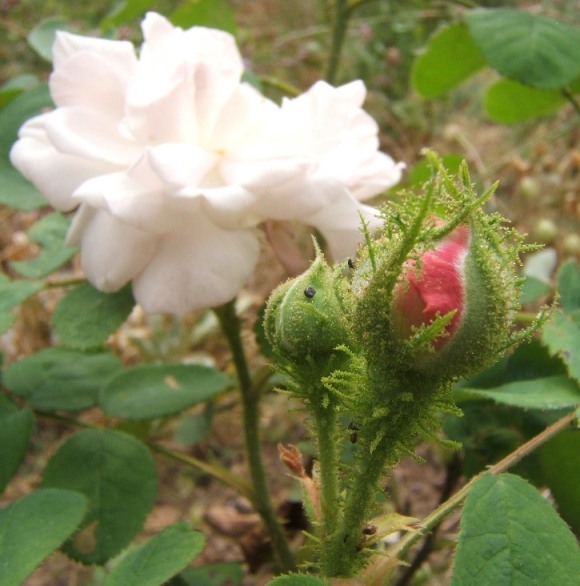 Nocheinmal Mousseline/Alfred de Dalmas mit Knospe. Wie angekündigt wächst sie in der Jugend langsam. Aber nachdem ich ihre Nachbarstauden abgeschnitten habe, sehe ich auch mal und erfreue mich an der Nachblüte!