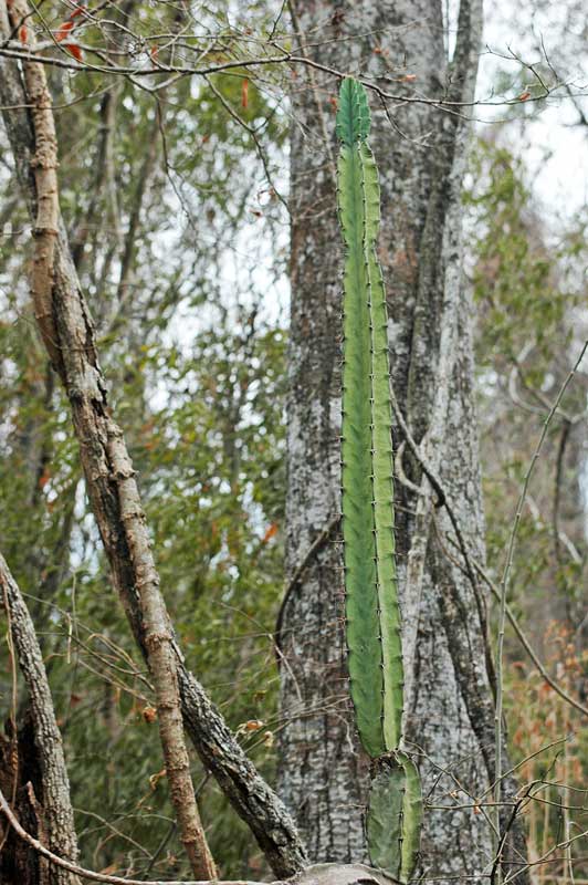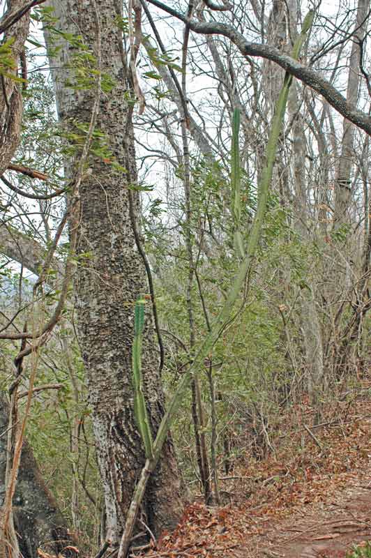 Auch in solchen Trockenwäldern wachsen Kakteen, die sich oft ein wenig lianenartig an Bäume anlehnen.