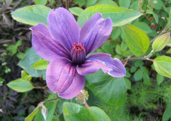 Hier ist Miranda die erste Staudenclematis, die ihre Blüten öffnet.