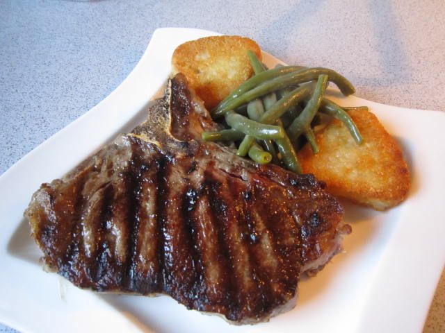 Wir haben am Dienstag der Fleischeslust gefrönt, es gab T-Bone Steaks dazu Kartoffelecken und die letzten gefrosteten Buschbohnen aus dem Garten