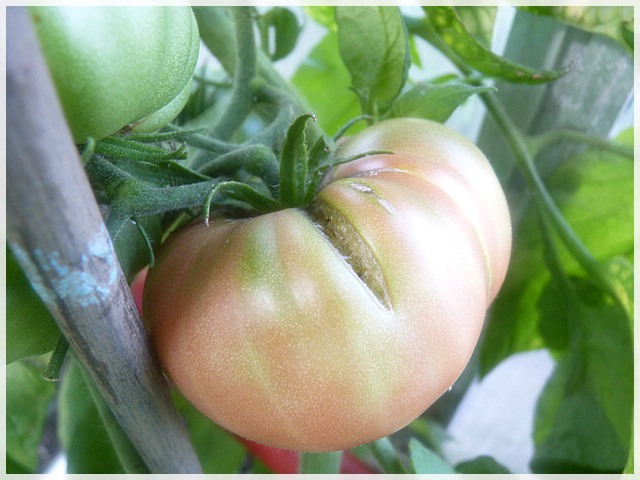Gestern habe ich die erste Himbeerrosa geerntet. Die Striped Roman hat leider Blütenendfäule und hier gibt es kein Gesteinsmehl( und meines aus Deutschland mitgebrachtes ist alle, Mist verflixter!