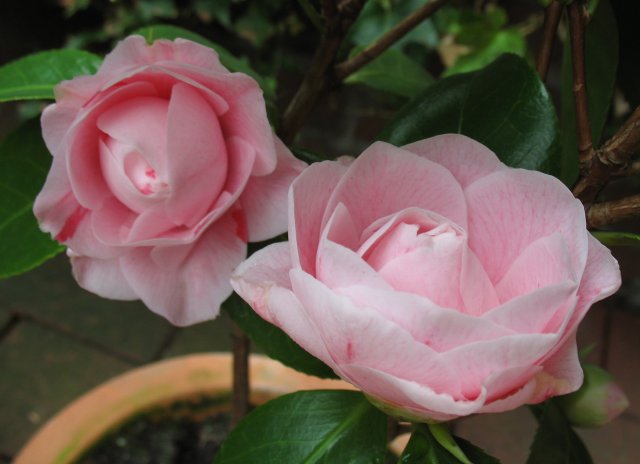 Und hier mein ganzer Stolz, die ersten Blüten einer Stecklingskamelie.