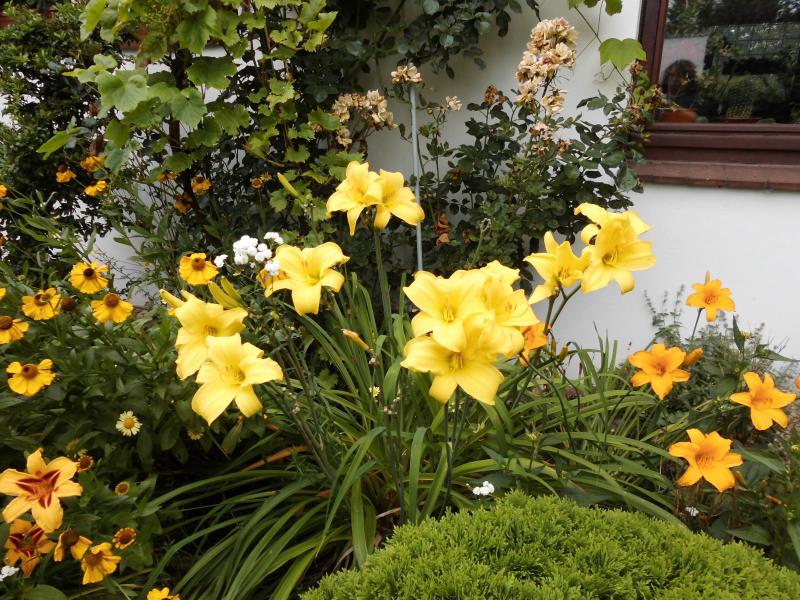 Dann habe ich seit mehr als 30 Jahren eine Taglilie, die gleichzeitig aufblüht, eine nahezu identische Blüte produziert aber deutlich niedriger bleibt und auch keine Ausläufer macht.