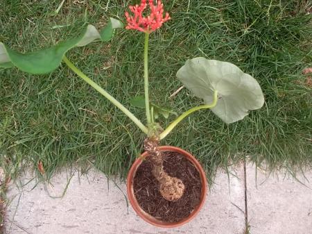 Blau gefällt mir zwar auch besser, aber sie ist trotzdem sehr schön. Hier mal etwas unspektakuläres, eine Jatropha podagrica. Diese ist eine selbst gesäte, die Mutterpflanze habe ich schon sehr lange, kümmere mich nicht viel um sie, aber sie blühen treu und brav immer wieder.