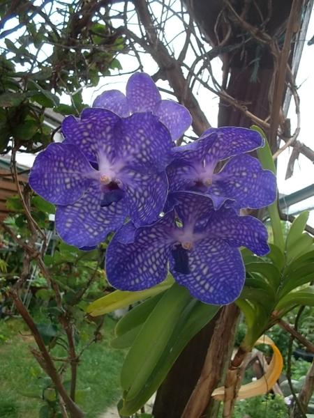 Mir gefällt das klare Blau deiner Vanda besser. Meine stammt auch verblüht vom Wühltisch. So muß man halt nehmen was dabei rauskommt.Ohhh, die ist mindestens genauso schön. Da erkennt man in der Blütenmitte die Biene Maja, wie sie fliegt. Ich bin keine Spezialistin, aber wenn sie blüht und es dauerregnet würde ich sie vielleicht auch etwas geschützter unterbringen.