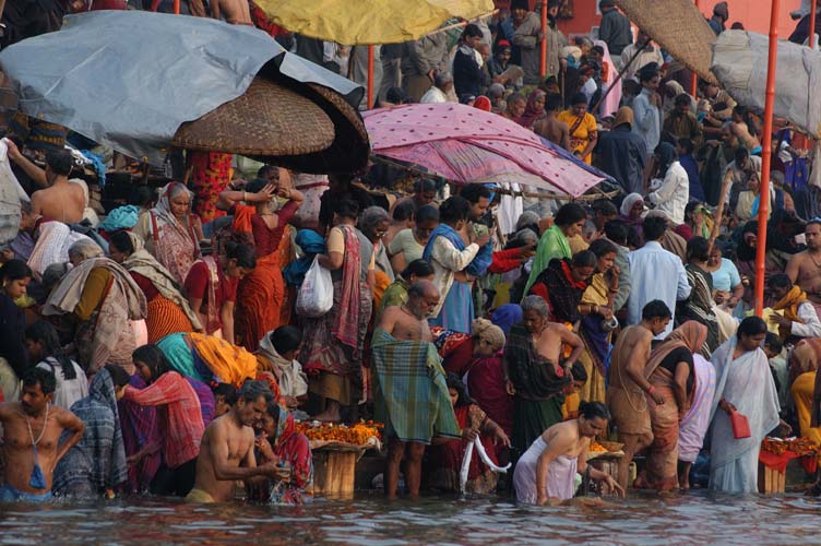 Heute habe ich noch ein paar Bilder aus Varanasi. Varanasi ist die Stadt des Shiva, des Gottes der Zerstörung, aber auch des Neuanfangs. Sie ist eine der heiligsten Städte Indiens. Im Ganges zu baden ist eines der Ziele jeden Hindus, und hier zu sterben bedeutet sofortige Erlösung aus dem ewigen Zyklus der Wiedergeburten.Ich hatte ja bereits oben in #4 und 5 zwei Bilder gepostet, hier nochmal eines davon: