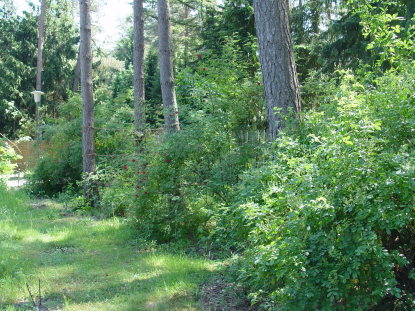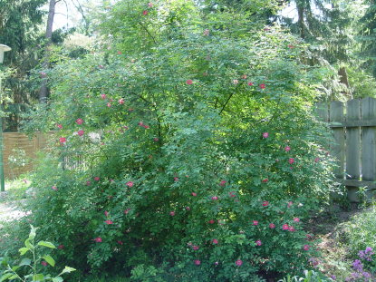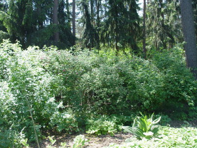 Mit Manning's Blush habe ich auch noch eine Rubiginosa-Hybride.Bei den Bibernells sind Latifolia, Old Yellow und Stanwell Perpetual vertreten.Rosa gallica und Rosa gallica Officinalis tragen mit majalis und den Bibernells zu einem wahren Ausläuferdschungel bei
