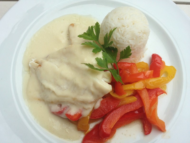 am freitag gab es zum mittag st. petersfisch mit meerettichsauce, reis und paprikagemüse es war leider etwas langweilig auf dem teller und auf der zunge