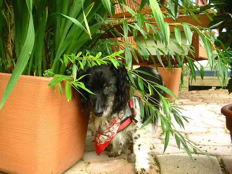 !Neues vom Alterchen: Immer, wenn man denkt es geht nicht mehr....:Vor etwa 4 Wochen ereilte mitten in der Nacht den Dicken etwas, was man wohl gemeinhin als "Schlaganfall" bezeichnen würde, ich hatte schon vorher mal drüber gelesen und auch unsere Tierärztin hatte mal einen Verdacht geäußert, als er letztes Jahr den epileptischen Anfall hatte. In der Nacht hab ich nicht mehr dran gedeacht, er rannte, wie verrückt, herum, war aber komplett orientierungslos und taumelig, lief nur an der Wand oder Möbeln entlang, um sich abzustützen, dötschte und knallte ständig überall mit dem Kopf an und fiel hin. Ich wartete eigentlich nur noch auf eine halbwegs christliche Zeit, um bei der Tierärztin am Samstag anrufen zu können für ihren letzten Hausbesuch, dass sie kommt. Dann fiel mir beim langen, traurigen Warten wieder diese Geschichte ein vom Schlaganfall, der keiner war, geriatrisches Vestibularsyndrom, zwar hatte er am Morgen keine hektischen Augenbewegungen mehr, aber in der Nacht war mir das schon bemerkenswert aufgefallen, ohne, dass ich diese vorher gelesene Geschichte noch im Hinterkopf gehabt hätte. Kopfschräghaltung war auch nur schwer reinzuinterpretieren, aber der Rest stimmte schon.Also hab ich nicht angerufen, sondern erstmal abgewartet.Und es wurde tatsächlich langsam wieder besser, in der nächsten Woche bin ich zur Tierärztin und hab alles geschildert (der Hund selber kann ja nicht mehr mitkommen), und auch sie stimmte mir nach langem Gespräch zu. Er bekam Karsivan zur besseren Durchblutung des Gehirns verschrieben. Er nimmt es jetzt etwa 4 Wochen und ich meine, dass es ihm sehr viel besser geht, besser auch, als vor diesem Zwischenfall. Vorher reagierte er kaum noch groß auf unsere Aktionen, der Kopf hing immer unten und er stierte dumm vor sich hin, mittlerweile guckt er uns an und interagiert wieder richtig gut, er beobachtet, nimmt Augenkontakt auf, schnuppert usw., natürlich ist er sehr daddelig und sicher auch ansatzweise dement und immer nocht gerade morgens, taumelig, aber er läuft wieder 2-3 Stunden am Tag im Garten umher, verläuft sich zwar oder rennt sich fest, weil er nicht rückwärts kann, im Haus ist alles mit Gittern und umgedrehten Sesseln und Polstern behindertengerecht ausgestattet, aber es geht. Nachts natürlich alle paar Stunden ein kleiner Gang und es geht auch manches schon vorher "daneben", blöd, wenn man nicht gleich aufspringen kann, wenn ein Torpedo im Rohr raus will und sich dann drin wälzt, also auch manchmal nachts duschen oder, wenn man durchtrampelt, wischen. Aber eigentlich ist er bemüht, nur die Zeit arbeitet manchmal gegen ihn.Es scheint, dass er jetz manchmal (womöglich durch das Karsivan, was aber ansonsten sehr gut tut) gerade Nachts unruhige Hechel- und Wanderattacken bekommt (das sind keine Schmerzen, da bin ich mir sicher, nur Unruhe und Angespanntheit), war auch ziemlich schlimm, weil er einfach nicht zur Ruhe kommen wollte und er sich selber ja kaum hinlegen kann und meine Hilfe braucht, sonst tigert er Stunde um Stunde mit den Krallen klappernd umher, da war auch bei uns nicht an Schlaf zu denken. Und er bekommt jetzt tatsächlich, wenn es mal wieder (eher selten) so weit ist, Valium, ja, ist eine Keule, aber auch das funktioniert sehr gut, Hunde resorbieren es wesentlich schneller, als Menschen. Ich werde ihm jetzt erstmal prophylaktisch abends Baldrian und Hopfen Dragees geben, aus dem Supermarkt, womöglich in homöopathischer Zusammensetzung, das schadet auch nichts mehr.Jaja, was man so alles macht, aber wenn er dann wieder schmatzend frisst, durch den Garten tappelt, am Zaun riecht und hier strampelnd auf der Decke träumt, denke ich, dass er noch nicht wirklich "rüber" will... 2 Monate auf dem Weg zur 19 sind schon wieder geschafft...