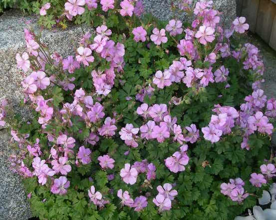 Das ganz gewöhnliche Steingartengeranium, G. dalmaticum. Ist zwar schön, aber man hat gut damit zu tun, es in Zaum zu halten.